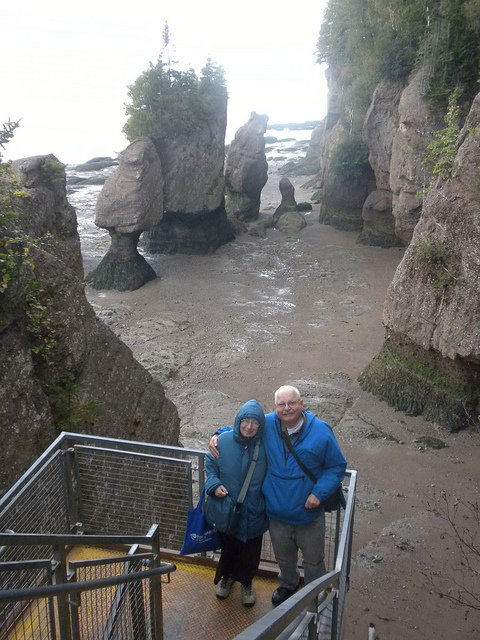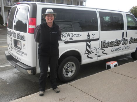 I had always wanted to see the famous high and low tides in Canada’s Bay of Fundy, though I doubted I could do this without some guidance. So Martine and I took the Hopewell Rocks and Bay of Fundy Coastal Tour offered by Roads to Sea of Moncton, New Brunswick. About ten of us crowded into a minibus with Anna-Marie Weir, our capable guide.