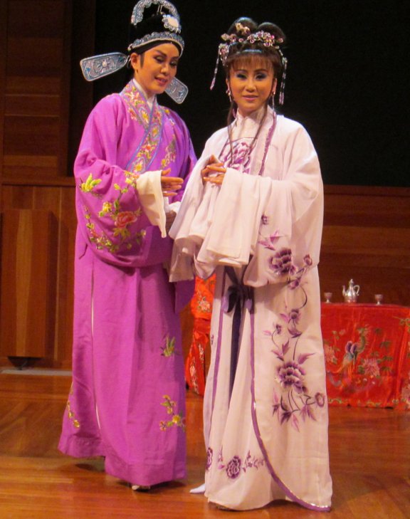At the end, of her presentation, Two performers from the Taiwan Opera, Chang Meng-I (below right) and Hwang Yea-Rong (below left), acted a sequence from one of the most famous operas in the genre, The Butterfly Lover. Based on a folktale some 1,600 years old, the opera can be traced to the Jin Dynasty. It has become the Chinese equivalent of Romeo and Juliet, with their star-crossed lovers, Liang Shanbo and Zhu Yingtai.