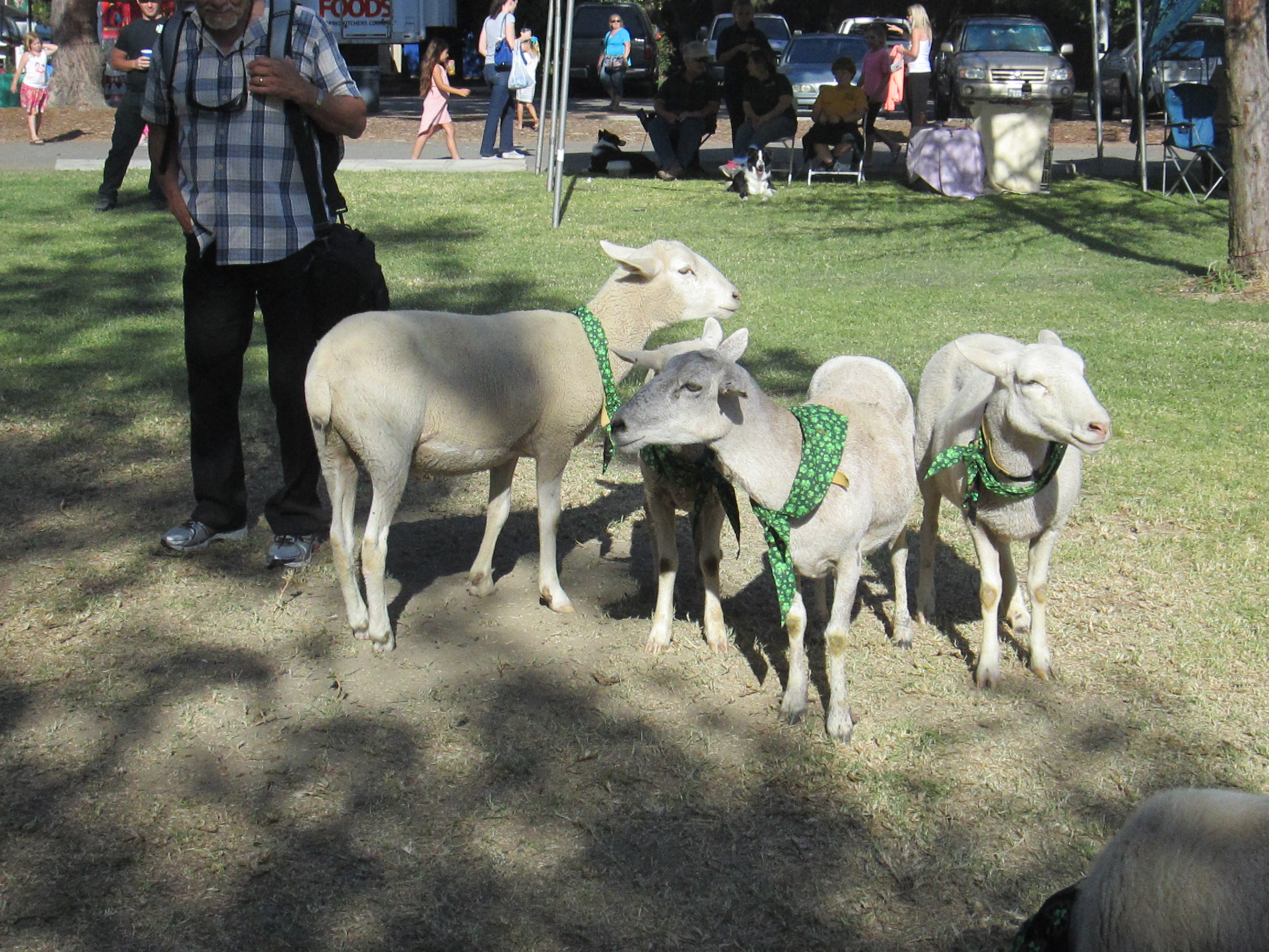 Within ten minutes, however, the real trained sheep dogs had rounded up the miscreant lambchops (see photo below) and brought them back to the demonstration area. The Bouvier was likewise found and promptly caged.