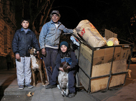 After dark, the streets of Buenos Aires fill up with cartoneros, whole families with large carts who go through the garbage for cardboard and other recyclable items for which they can earn a few pesos. After the economic crisis of 2001, the government wisely has begun to recognize them and even facilitated their scavenging by creating the tren blanco, or “white train,” to bring them from the villas miserias, where they live, to the center of the city. These trains consist of old rolling stock with the seats removed (to allow for carts to loaded) and sometimes even without lighting.