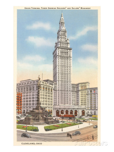 The symbol of Cleveland was the Terminal Tower—oh, how unfortunately symbolic!—on downtown’s Public Square. (You can catch glimpses of it in the movie A Christmas Story (1983), many of whose exteriors were shot in the area.) It was during those school years the largest building in the country outside of New York. Underneath was a large concourse and the main rail passenger terminal for Northeastern Ohio.