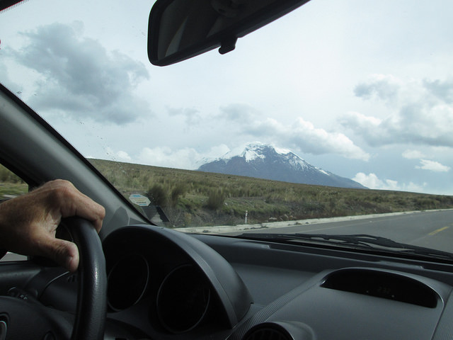 Then, as we rounded a hill, quite suddenly, we saw the volcano Chimborazo dead ahead of us. The clouds had moved aside, allowing us to see the glaciers on Ecuador’s tallest mountain. If you measure altitude from the center of the earth rather than sea level, it is the tallest mountain on earth, looming in splendid isolation from the rest of the Andes.