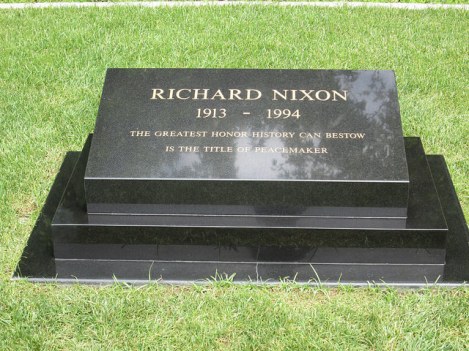 Today Martine and I visited the Richard M. Nixon Library and Birthplace in Yorba Linda. It is a humble house that was built from a kit by Nixon’s father in 1912. Most of the furniture is original, including the bed in which Hannah Nixon gave birth to the 37th President of the United States. In keeping with that humility, within a few feet of the house’s rear entrance are the graves of Richard and Pat Nixon, who died within a year of each other.