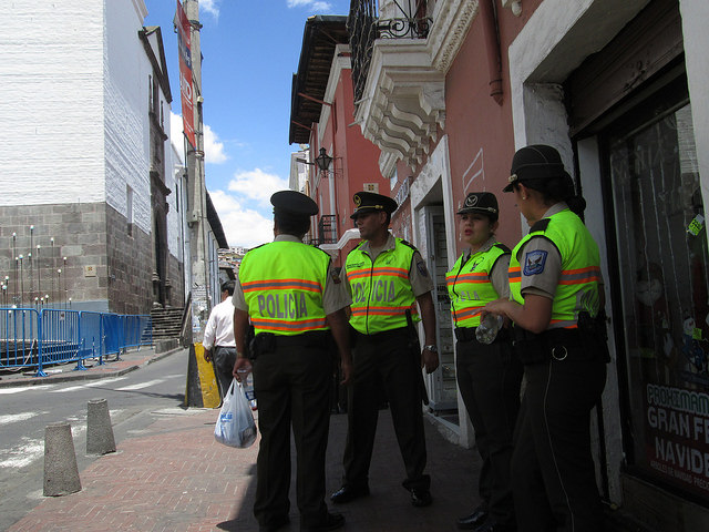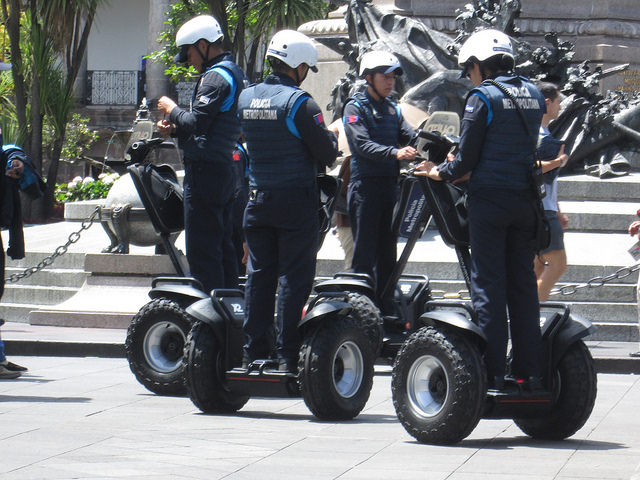 One thing that my brother and I noticed when we were in Quito, Ecuador, last October was that there are many different types of police. We sat in the central Plaza de Independencia for upwards of two hours, watching the different types of police congregate and go their separate ways, only to be replaced by policia with different uniforms and different means of locomotion. We were particular amused by the Segway patrol that mostly wheeled around chatting with one another.