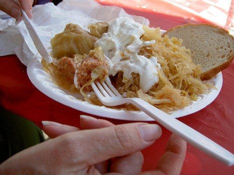 There used to be some good Hungarian restaurants in Los Angeles; but, as big a city as this is, there do not appear to be any at this time. So Martine and I show up at the local Hungarian Reformed Churches for their festivals. I go to recover my memories, and Martine goes because (although she is French) she loves Hungarian food more than any other.