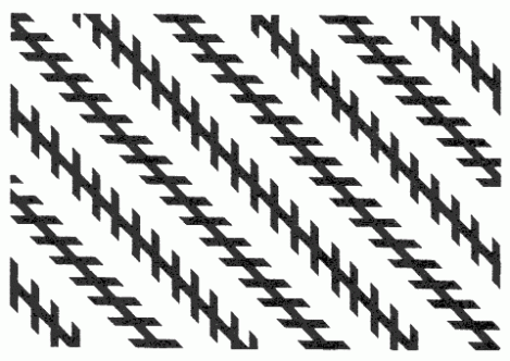 Optical Illusion Posted on June 2, 2017 by Tarnmoor | 2 Comments The So-Called Zollner Illusion All the long diagonal lines are actually parallel to one another. Measure them if you don’t believe me. The short horizontal and vertical lines just make it look otherwise. 34.052234 -118.243685 Rate this: