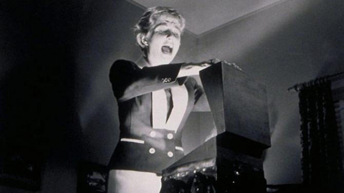 There are few films as hard-boiled as Robert Aldrich’s Kiss Me Deadly, based on the Mickey Spillane novel of the same name (but with a comma after “Kiss Me”). Ralph Meeker’s Mike Hammer is a handsome young thug who does not shrink at dispensing excruciating pain or administering summary execution. The movie is fairly close to the spirit of the novel, with one major difference. What Spillane’s private eye is looking for is some kind of drug; Aldrich instead made it some kind of radioactive material that explodes when mixed with air. Also, the film is set in Los Angeles rather than New York; and it uses the change of scene to advantage.