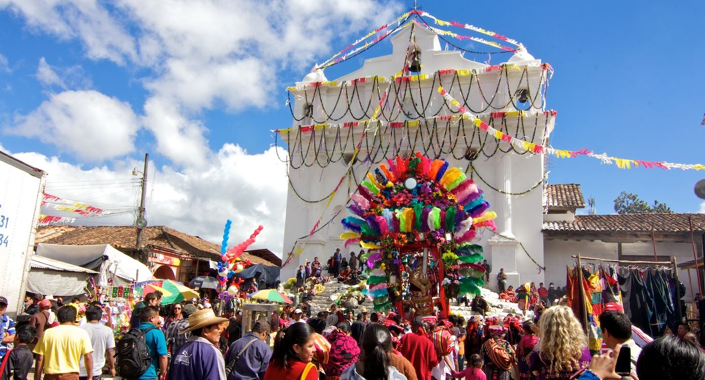I suspect that the Mayans of Chichicastenango in the Guatemalan Highlands is not too diferent, except that the dialect spoken is not Tzotzil, but Kaqchikel. The town is famous for its handicrafts market and for the devoutness of campesinos visiting Santo Tomás church, shown above. I’ll bet that, as in Chamula, one is forbidden to take a camera into the church.