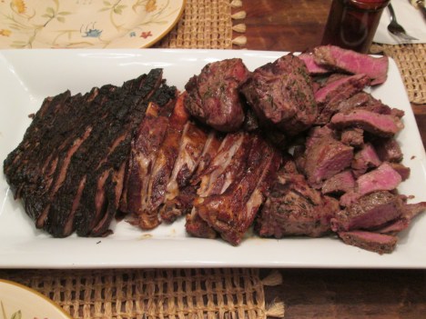 Since the onset of my Type II diabetes about ten years ago, I have been more of a part-time vegetarian. But there is something about my brother’s cooking that cannot be denied. The last time I overindulged in meat was in Buenos Aires, when I went to a parrilada, ate a huge steak, and got picturesquely ill from several of orifices, missing my bus the next afternoon to Puerto Iguazu. This time, I merely sampled the cuts on display and suffered no untoward effects.