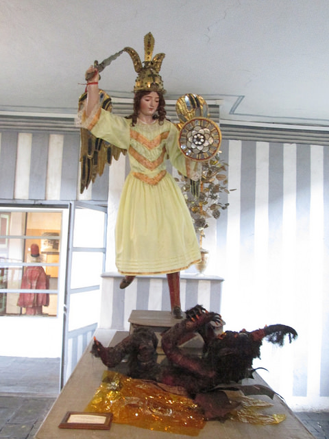 I saw the above statue in the Museo de Las Conceptas in a former convent in Cuenca. He is another one of those militant angels of South America, and one who is in the middle of overcoming a demon. Cuenca has two religious museums. One is the former cathedral on the main square, and the other is in the former convent.