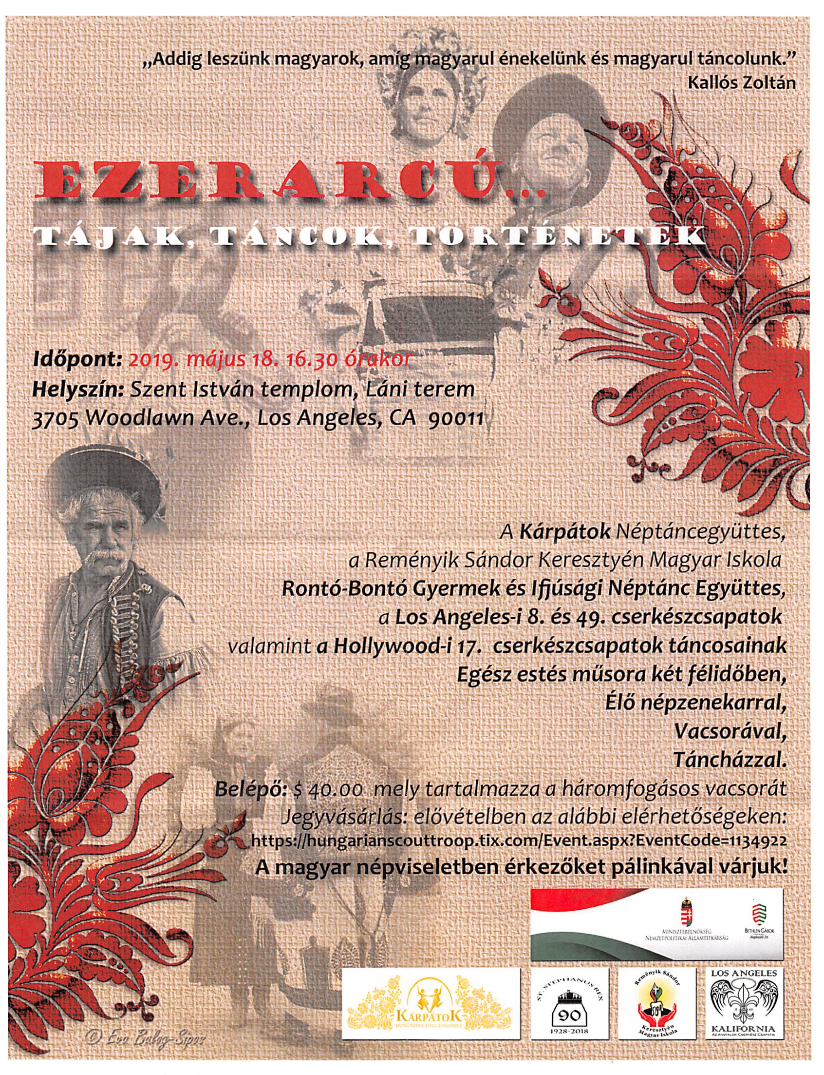 Last night, Martine and I attended a Hungarian folk dance program at St. Stephen’s Catholic Church just south of downtown L.A. The dance was put on by the Kárpátok Folk Dance Ensemble, which has just recently celebrated its 50th anniversary. That a city like Los Angeles, which does not have that large a Hungarian population, could support an organization like Kárpátok is an unending surprise to me.