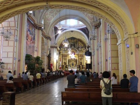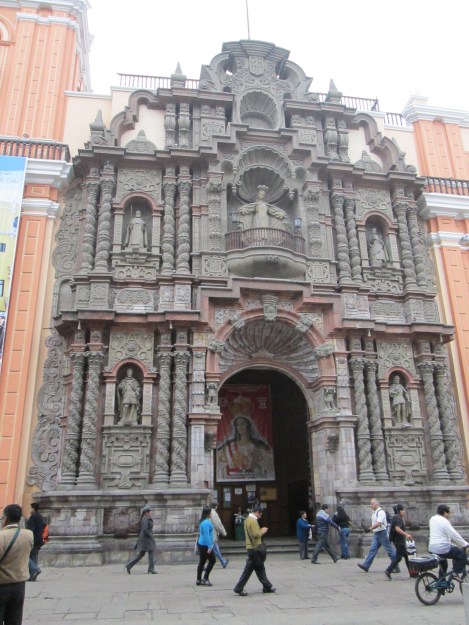 In the historic center of Lima, Peru, on the Jirón de la Union, sits one of the oldest churches in South America. When I visited Peru five years ago, I would have the taxi driver let me off at the south end of the Jirón so that I could pass by the elaborate Churrigueresque façade of La Merced and wander in. When I dropped in at these old churches I frequently found myself attending Holy Mass as I was gaping at the gorgeous decorations. I always stayed to the end, out of respect for the religious orders which built such splendid edifices to worship God.