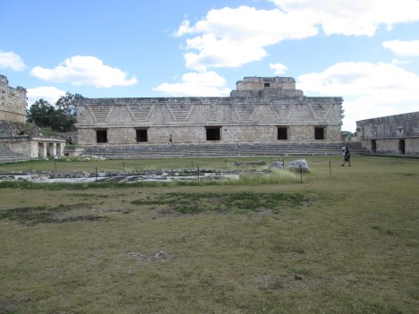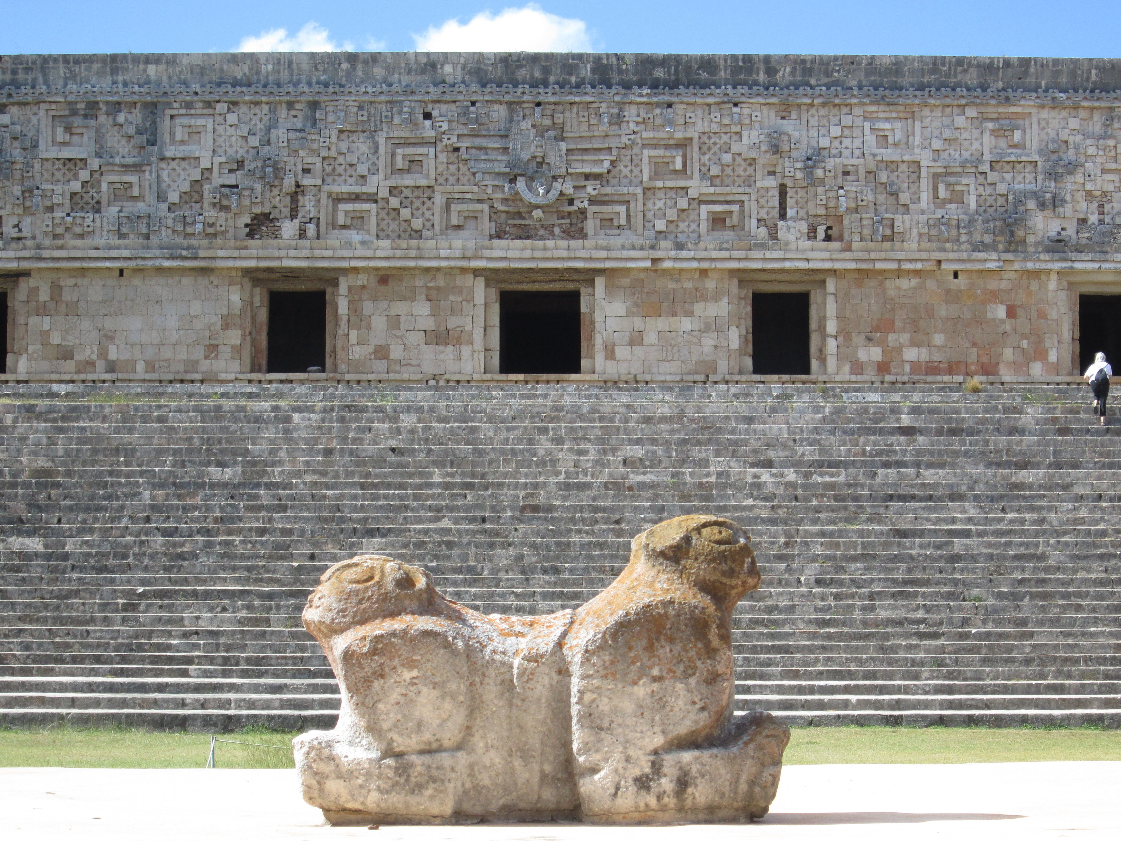 Although there was a structure at Uxmal called the Governor’s Palace, there was no governor. There was, however, a king who ruled at the time the Palace was built: His name was Chan Chak K’ak’nal Ajaw. Curiously, none of the other god/kings of Uxmal are known by name, according to Robert J. Sharer and Loa P. Traxler’s authoritative The Ancient Maya (Sixth Edition). Unfortunately, the glyphs at Uxmal have been badly weathered.