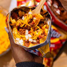 The first time I ate a Frito Pie, it looked like the above photo, and it was purchased from where it was invented, a lunch counter in Santa Fe, New Mexico.