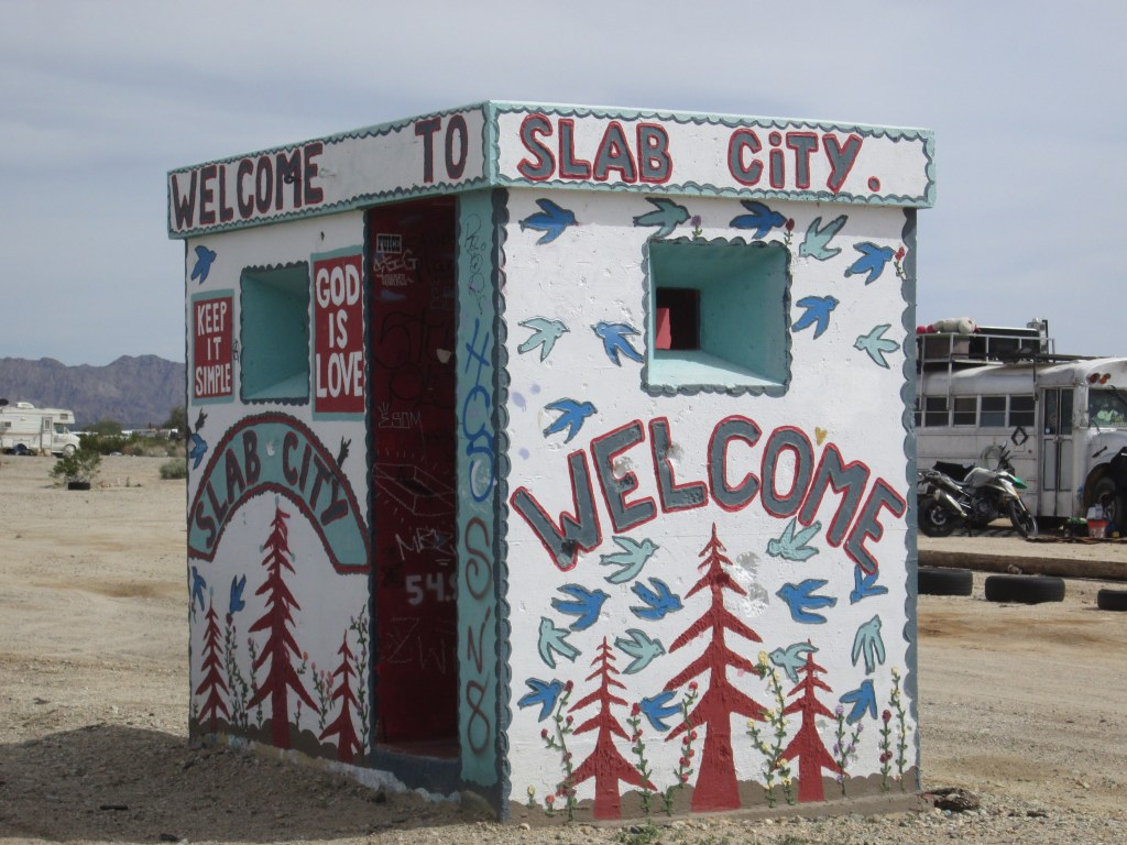 Well, now, it’s pushing it a bit to call it a civilization. The people who live on the eastern shore of the polluted Salton Sea live under difficult conditions. The temperature during the summer drives most of them away to cooler climes. Drinking water, especially for the communities of Slab City, Salvation Mountain, and East Jesus is problematic. To put it simply, there isn’t any.