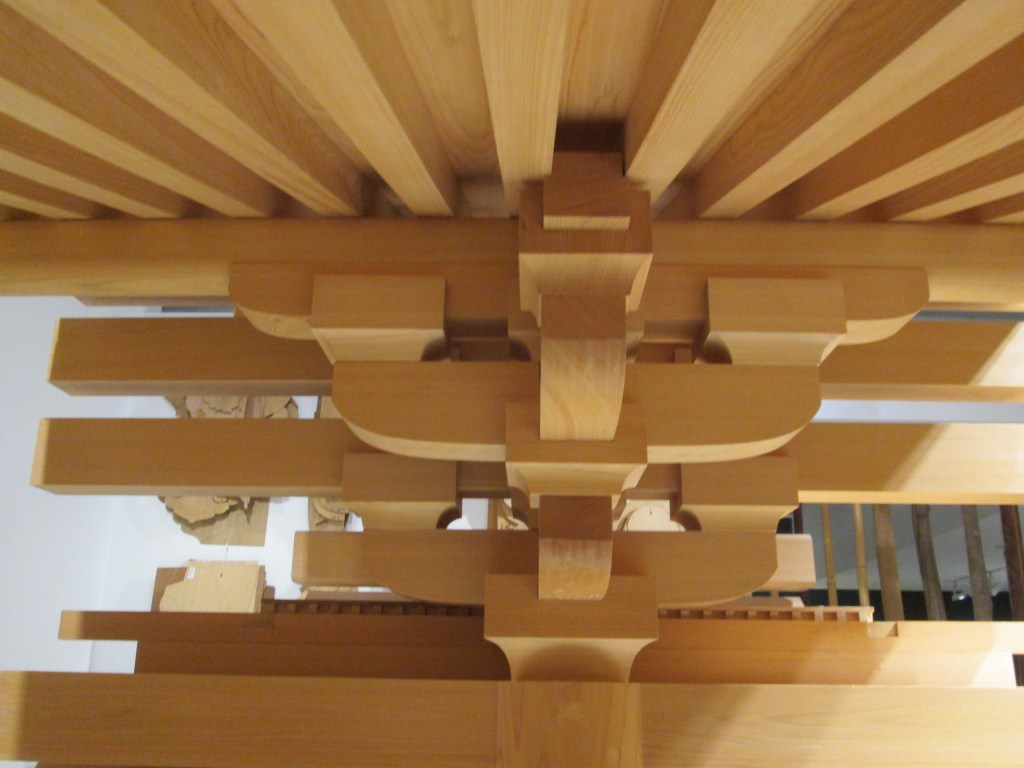 What impressed me the most were the exhibits of the intricate joinery linking the boards, posts, and beams using careful measurement and relying as little as possible on nails and other iron and steel fasteners. The result is aesthetically pleasing and built to last. And because it is carefully selected from a large variety of native woods, it even smells beautiful.