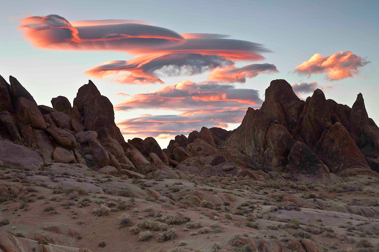 Just west of the town of Lone Pine are a strange set of foothills comprised of picturesque rounded rocks piled up for hundreds of feet or more, behind which are the tallest peaks of the Sierra Nevada, including Mount Whitney. Among these rounded rocks were shot hundreds of Westerns, not to mention horror films, sci-fi, and you-name-it. Following is a ridiculously partial list: