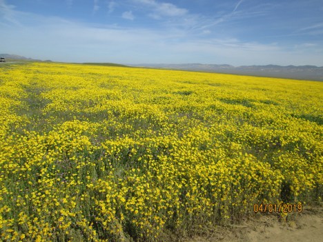 My friend Bill Korn and I have been talking about seeing the wildflower blooms at the Carrizo Plain for several years now. As long as I worked doing taxes, however, I was never able to go before April 15; and by that time, the show was all over. Now, being retired, I jumped at the chance. Bill and I met at a Western Bagel in Valencia—he started his trip in far-off Altadena—and we set out in his Prius.