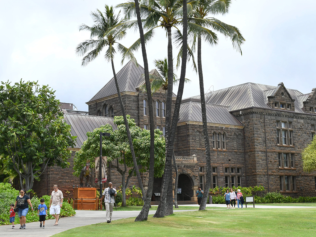 The Bishop Museum is not on the route of the trolleys that run up and down Waikiki heading for the big tourist attractions of the city. That’s because it’s for serious tourists only, who really want to know about the cultures of Hawaii and Polynesia. And it’s not just a museum: It is also a scholarly research institution that sponsors and publishes studies. It has been designated by the state government as the Hawaiʻi State Museum of Natural and Cultural History.