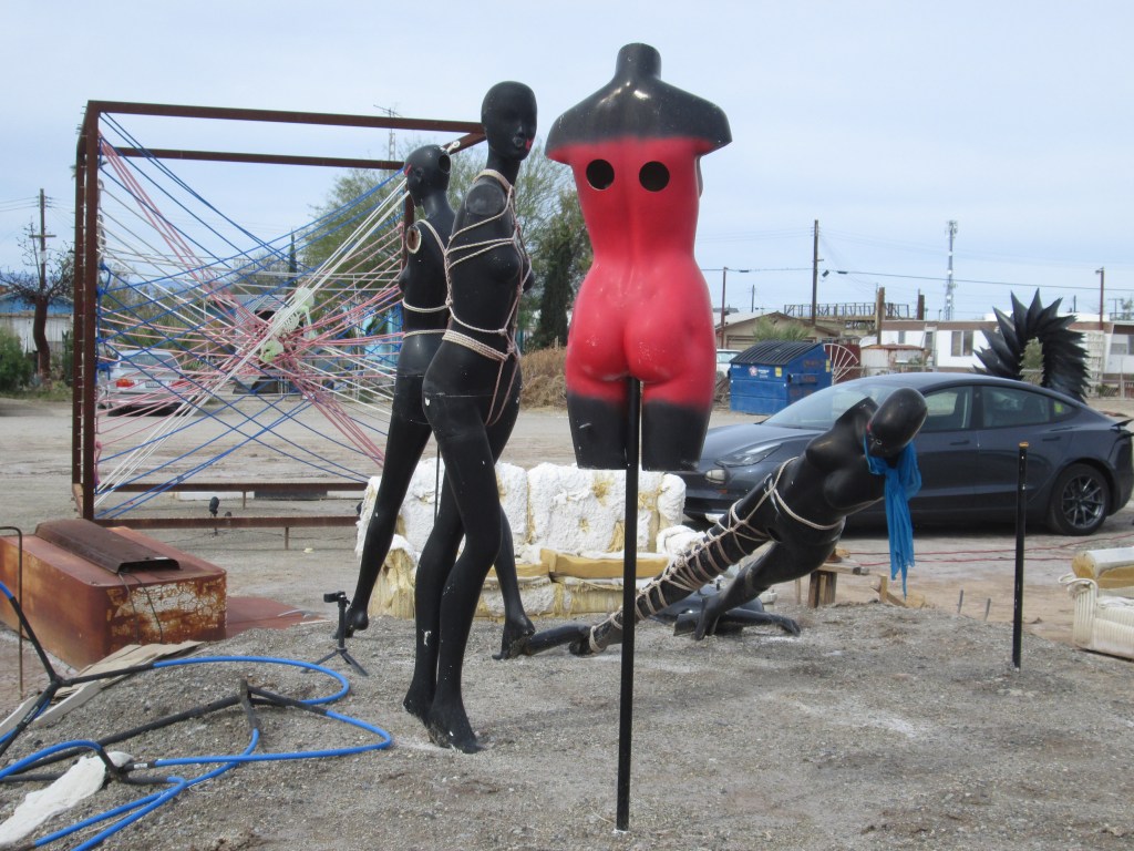 Unlike Bombay Beach, the subject of yesterday’s post, there is neither running water nor electrical power nor trash pickup in Slab City. I imagine that water has to be trucked in from elsewhere in Imperial County. As for power, there are a lot of solar panels and probably not many air conditioners. During the summer, the mean daily maximum temperature is between 102° and 107° Fahrenheit (39° and 42° Celsius). Being in the middle of the desert, the precipitation is mostly nonexistent, and the wind can be wicked, bringing with it chemicals from the polluted Salton Sea shore.