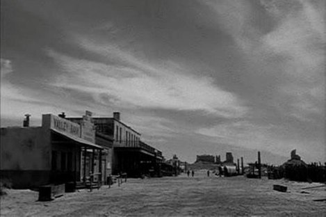 The film contains a whole sequence of what I call privileged moments. These are scenes that send shivers up my spine irrespective of how many times I see the film. The most incredible ones in My Darling Clementine appear in the middle of the film. Wyatt Earp (Henry Fonda) is lazing in a chair on the porch of his hotel, and Morgan (Ward Bond) and Virgil (Tim Holt) Earp are about to leave to visit the grave of their brother James. The Earp brothers notice a number of buckboards filled with people streaming into town. It turns out there will be a dance commemorating the building of a church.
