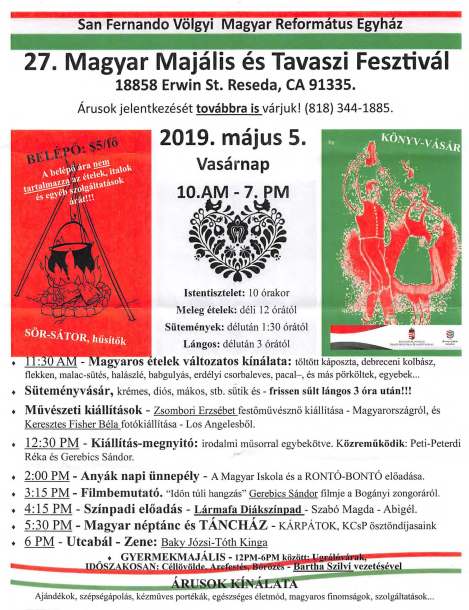 Every year on the first Sunday in May, the Grace Hungarian Reformed Church in Reseda has a festival with authentic Magyar cuisine and Mothers’ Day entertainment. Unlike previous years, I couldn’t find any mention of the festival on the Church’s website. Martine made the perfectly logical suggestion for me to call the Church, except she made it to the wrong person. I have something of a telephone phobia, especially when I’m calling people I do not personally know. So Martine went and made the phone call herself. And yes, the festival was taking place at the usual time and place.
