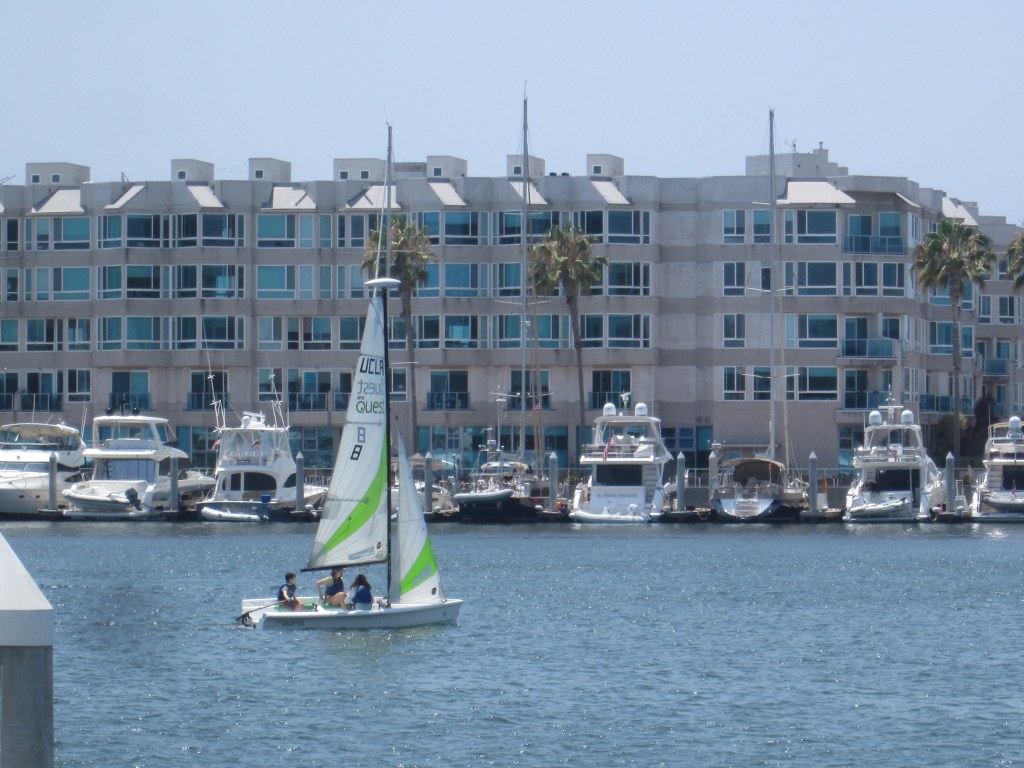 As the heat continues, I occasionally seek the cool ocean breezes of Burton W. Chace Park in Marina Del Rey. I say occasionally because, on weekends, the park is being loved to death and the parking lots are all parked up. Yesterday, I sat down in the shade at the edge of the Marina while reading Paul Theroux’s The Last Train to Zona Verde (2013).