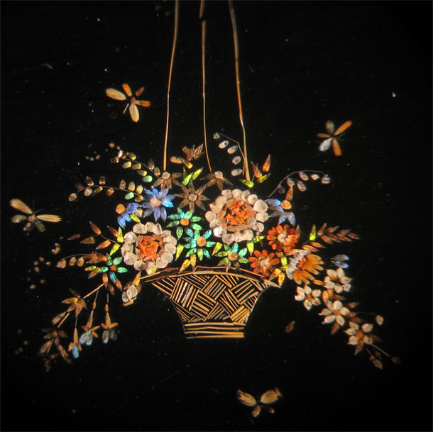 Another miniaturist on display is the work of Henry Dalton (1829-1911) consisting of images created from diatoms and the scales of butterfly wings, such as the following: