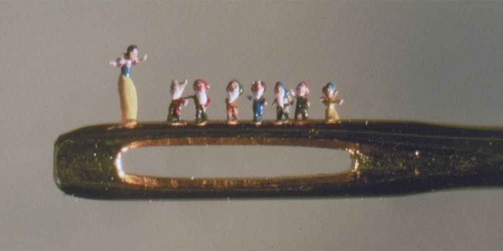 Whatever may be implied by the name, it was a real museum in that it was a collection of wonders, concentrating on smaller exhibits given the size of the property. The St. Patrick’s Day crowd consisted almost exclusively of millennials, who wandered the dark and twisting corridors of the museum peering at such exhibits as miniatures by an Armenian artist named Hagop Sandaldjian, such as this representation of Snow White and the Seven Dwarves atop the horizontal eye of a needle: