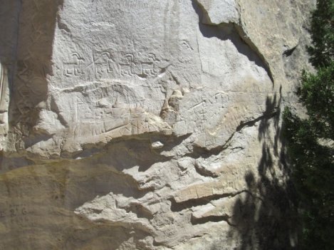 One place I have visited several times in my travels through New Mexico is El Morro National Monument, known for bearing “graffiti” from the Anasazi, the Spanish Conquistadores with Oñate and Coronado, and American scouting parties of the 1850s. There they all are, along the east bluff of the butte. And if that’s not enough, you could climb to the top (only a couple hundred feet) to see the ruins of Atsinna, the ruins of a well defended Anasazi pueblo with long views in every direction.