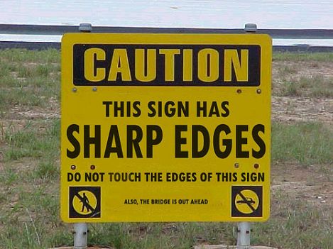 This is pretty much self-explanatory, though I doubt it was placed in a location where anyone could get hurt. Perhaps Trumpf’s beautiful new wall separating us from Mexico could be replaced with a few thousand of these signs—in English and Spanish.